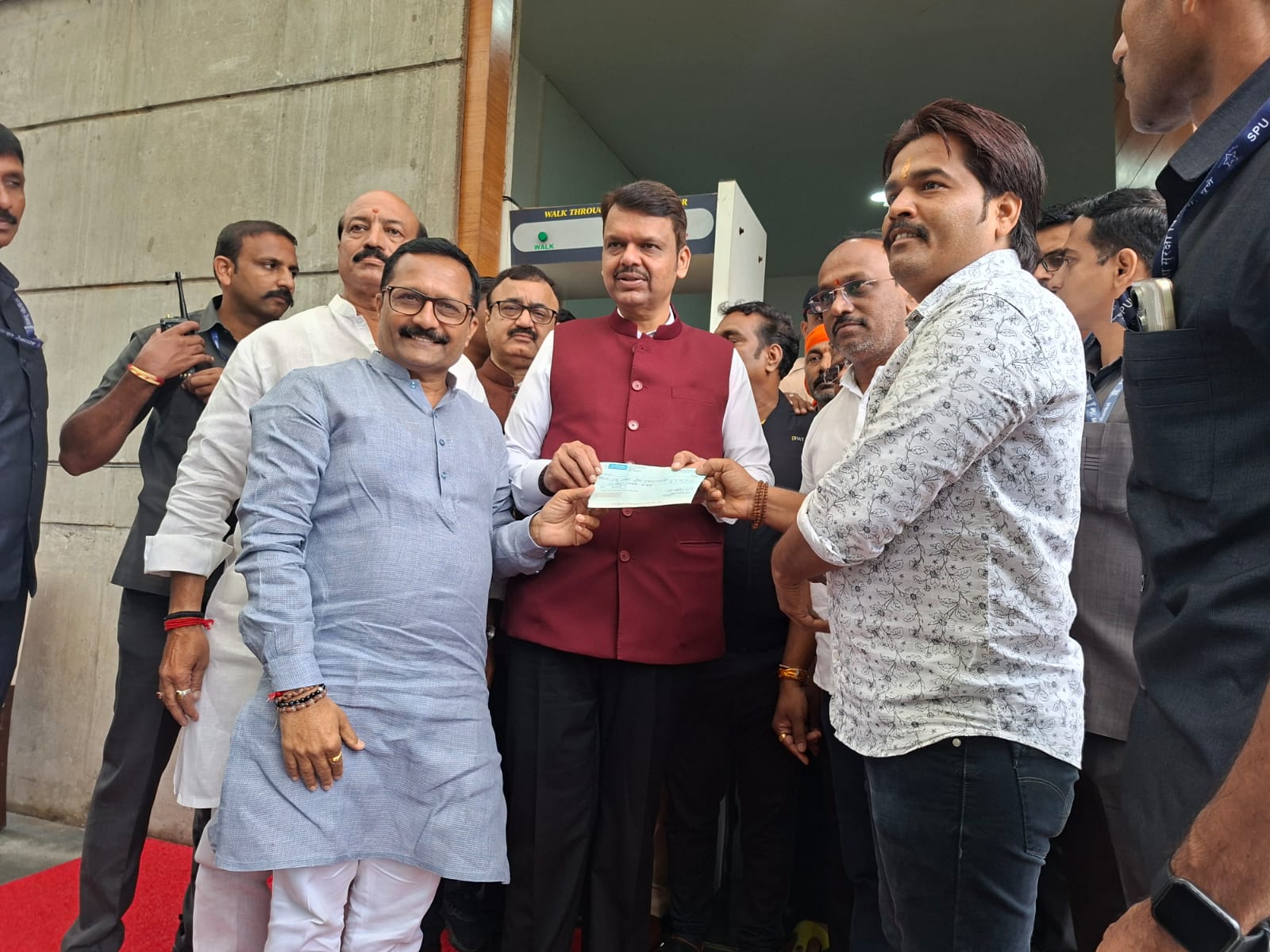 कसबा विधानसभा मतदारसंघाचे आमदार हेमंत रासने यांच्यासमवेत मुख्यमंत्री देवेंद्र फडणवीस यांच्याकडे मदतीचा धनादेश वनवे यांनी सुपूर्त केला.